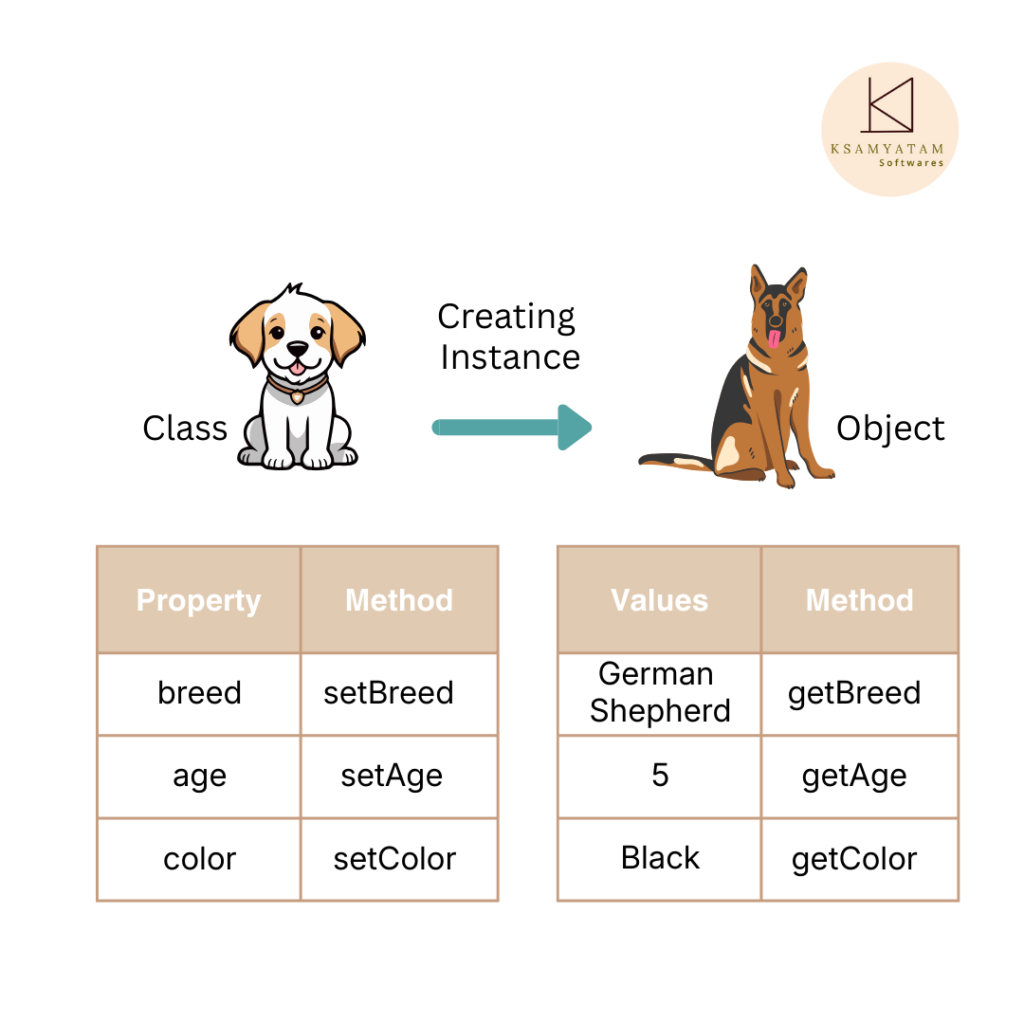 - Instantiation : The ‘new’ keyword is used to create the object.